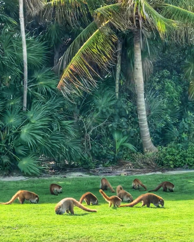 Speaking of the jungle, I really didn’t have the course to myself. Iguanas, colorful birds, and a special treat, protected coatis that tried to hijack my cart, were gallivanting all over the place, reminding me of my tiny place in the universe. The only thing missing were crocodiles and monkeys, or else I would have been completely smitten.