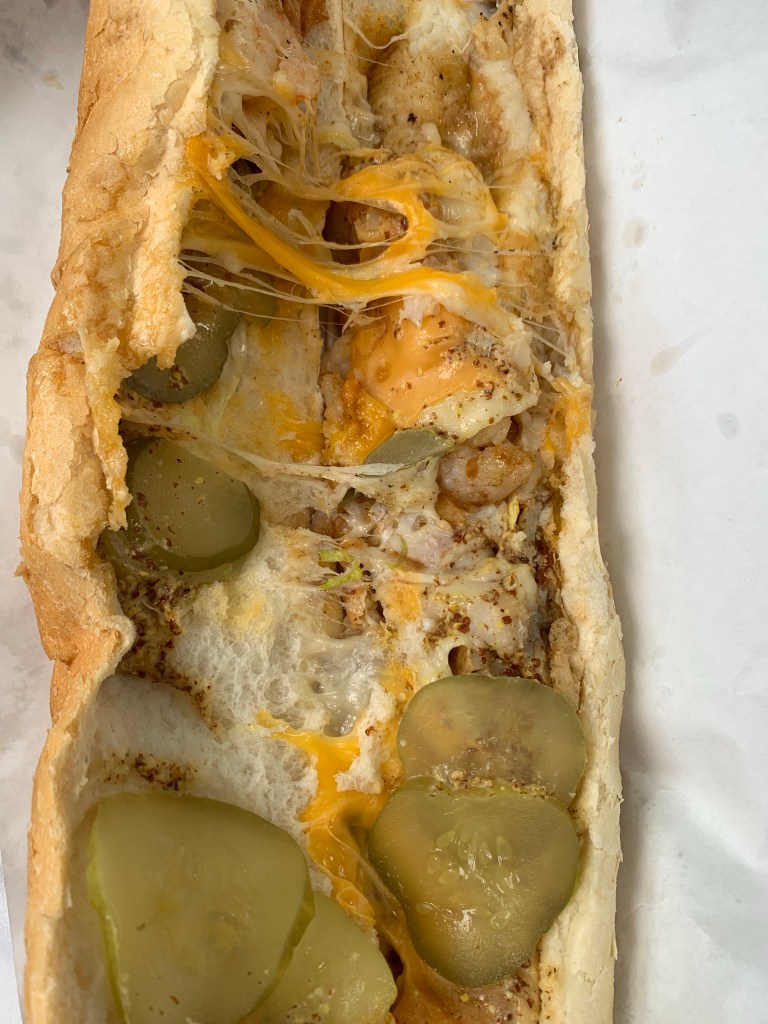 I think the only thing they got wrong was Junior’s name, the nice lady referring to him as Julian for the rest of the day. They definitely did not get “The Bomb” wrong, a footlong plus sandwich stuffed with shrimp, catfish, cheddar, creole mustard, and pickles, the flavors melding together perfectly.