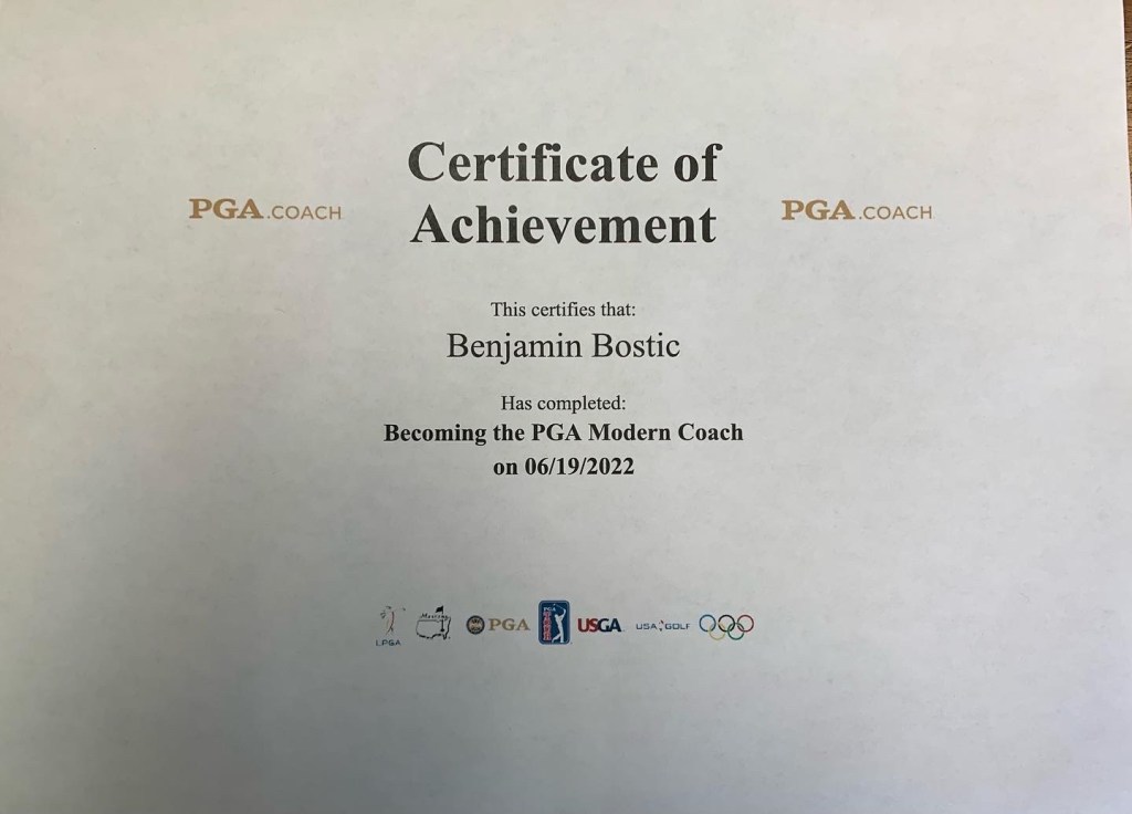 WoW! This fantastic – another achievement for you. Your dedication to your growth, your hard work, you growing yourself into another great carreer that your love and makes you happy. And you inspire so many to work at achieving their goals. I am so proud of you. You are amazing. And your PGA certificate! WOW Again!