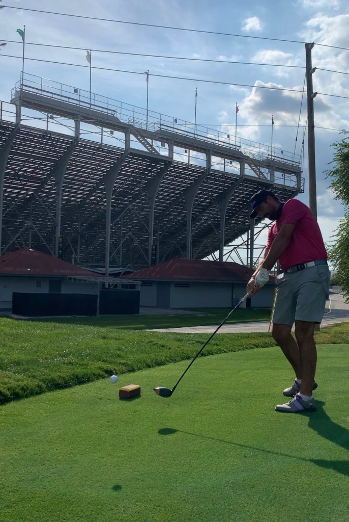 Playing golf inside Indy Motor Speedway was a unique experience.
