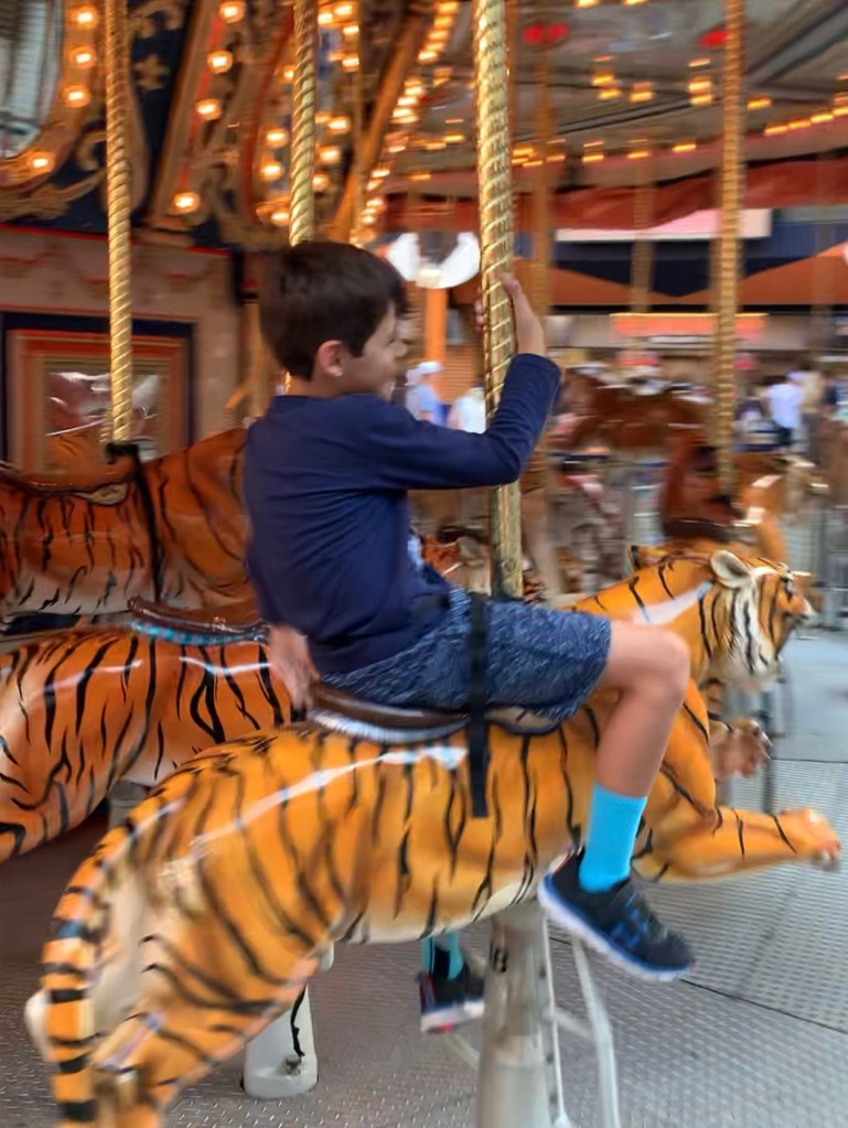 I tried to make sure every day had at least one or two traditional kids activities. Looking at Pokémon cards, reading at the bookstore, chalk drawing, or riding the merry go round.