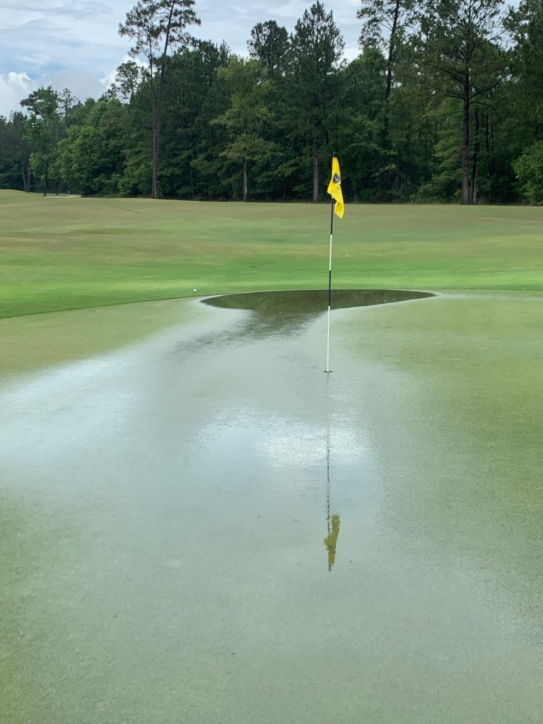 When the skies cleared, I went back to the 17th tee, hit one so far away from any trouble that I had over 200 yards left into the hole. I hit a decent one to the fringe, then proceeded to take four more shots to get it in the hole.