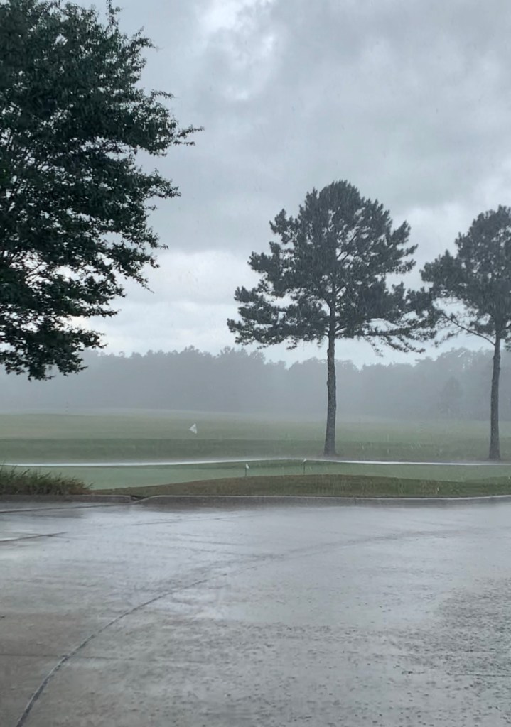 As I readied myself to hit my tee shot, I saw the tournament director driving backwards up the cart path, so I stepped away. It was obvious that he was about to blow the horn for our second weather delay, but he wasn’t quite ready. I could proceed.