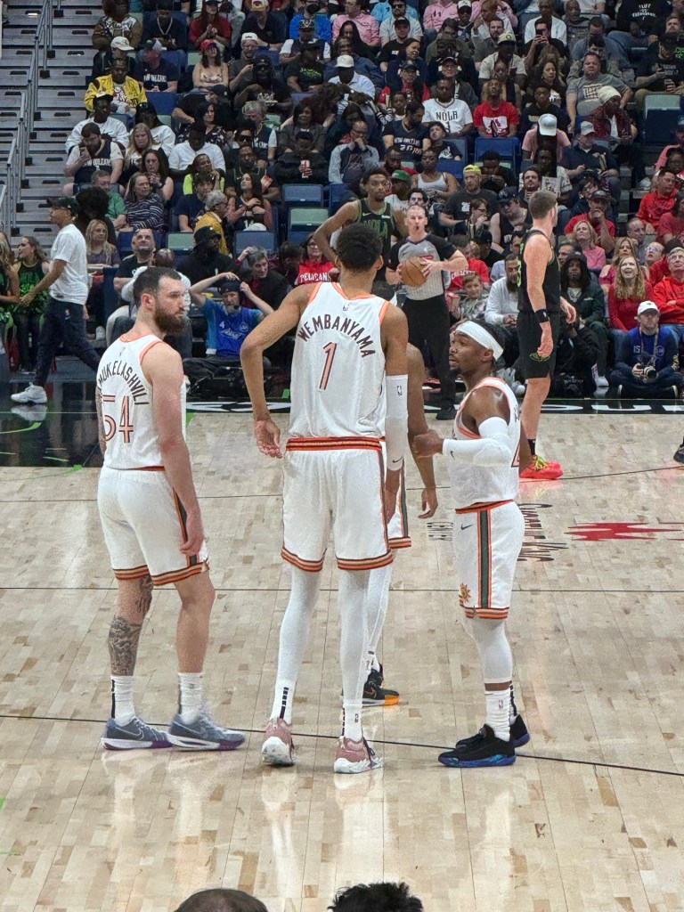 Anyways, I put on my game face. As soon as we get there, it will all be worth it. And it was. As soon as we laid eyes on Wemby, we couldn’t really stop staring. It was mesmerizing. What kind of car must he drive? How long are those leggings he is wearing? He is two feet taller than that ref.